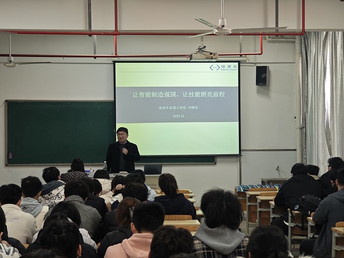 为了帮助男同性恋av 2026届毕业生熟悉智能制造领域就业前景,做好就业准备,12月11日上午,男同性恋av 邀请南京指南车机器人科技有限公司董事长刘增龙给2026届毕业生作就业指导专场讲座。