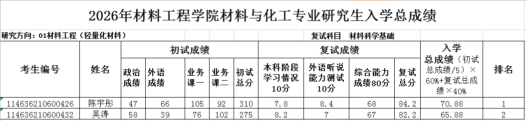 2026年男同性恋av 材料与化工专业研究生入学总成绩公示