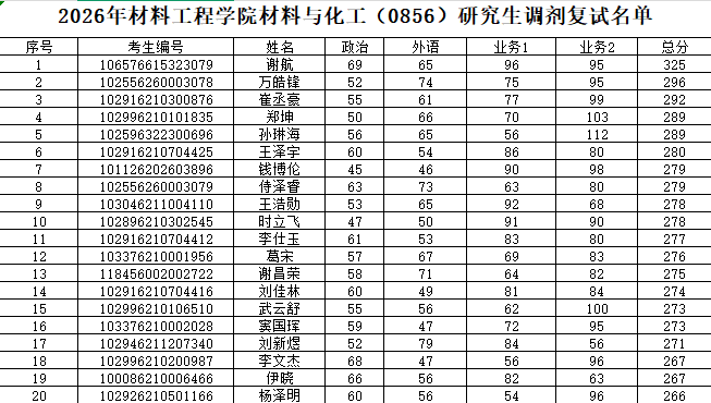 2026年男同性恋av 材料与化工(0856)研究生调剂复试名单