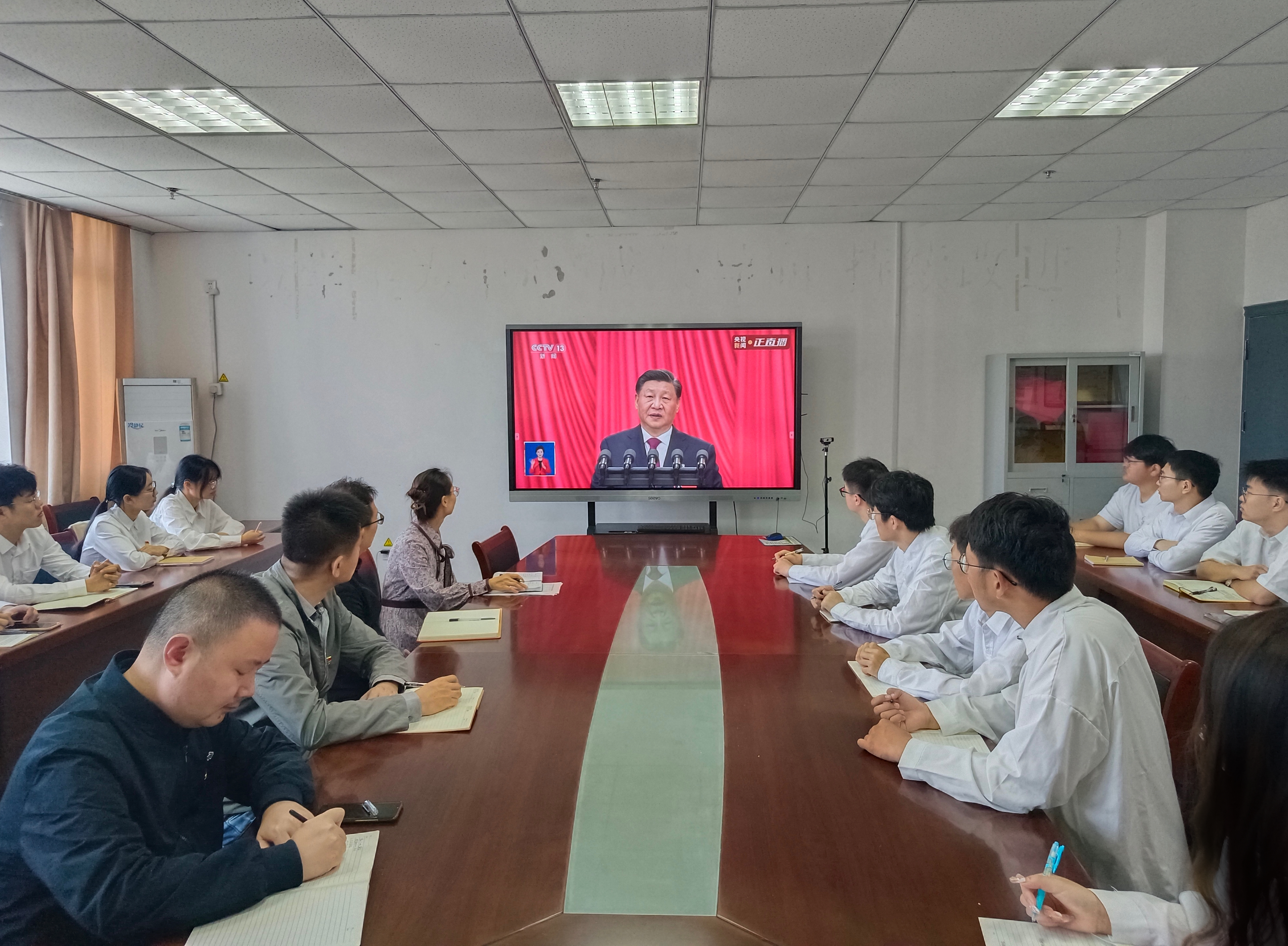 10月16日上午,中国共产党第二十次全国代表大会在人民大会堂开幕,习近平总书记代表第十九届中央委员会向党的二十大作报告。男同性恋av 组织广大师生通过线上线下的方式收听收看开幕会实况,院党总支书记羊悦、副院长欧军飞、院党总支副书记、副院长占成,师生党员代表、学生干部骨干在知行楼512会议室集中收看。