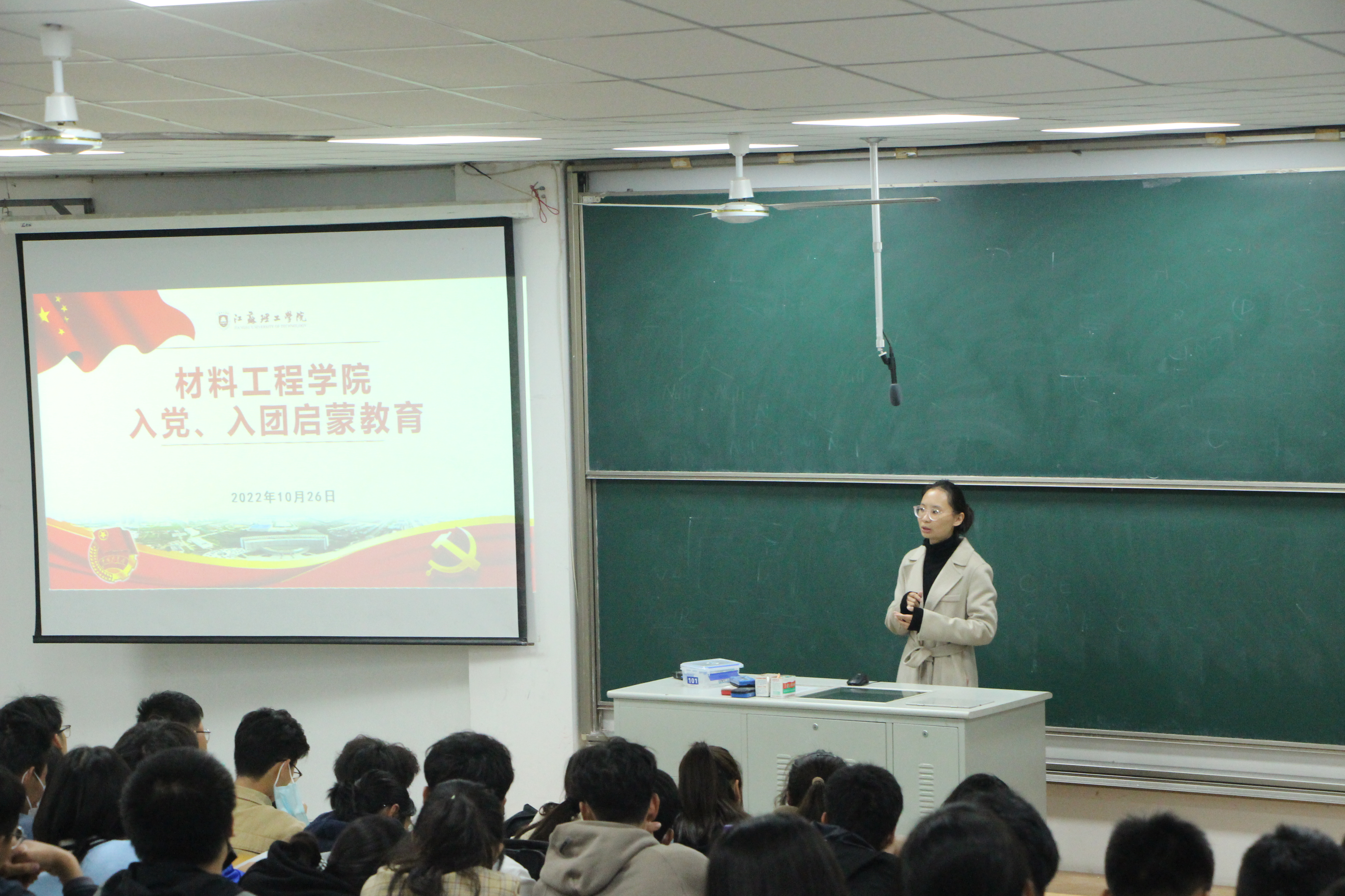 为教育引导2022级新生进一步加强自身建设,提高政治素质,端正入党动机,切实把好党员发展“准入口”,10月26日下午,男同性恋av 在博远楼101教室举行以“献礼二十大,青春心向党”为主题的入党入团启蒙教育活动。院学生党支部、院团务部及全体2022级新生参加了本次活动,活动由院分团委书记、学生党支部书记徐洁主持。