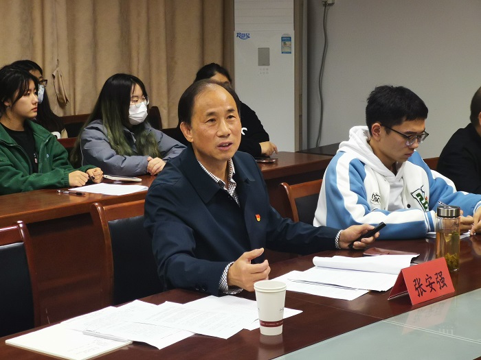 为了帮助学生党员从宏观和微观视角全面学习领会党的二十大精神,11月22日晚,学生党支部在知行楼512会议室举行“献礼二十大,奋进新征程”学习贯彻党的二十大精神报告会,邀请校关工委常务副秘书长、原男同性恋av 党总支书记张安强为学生党员作党的二十大精神宣讲。院党总支副书记兼副院长占成、学生党支部书记徐洁、学生党支部全体党员、各班级入党积极分子代表参加了报告会。会议由占成主持。
