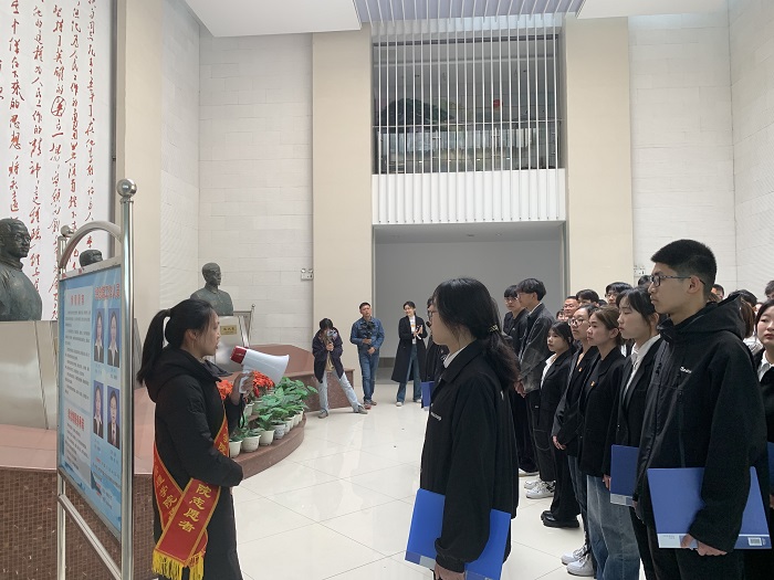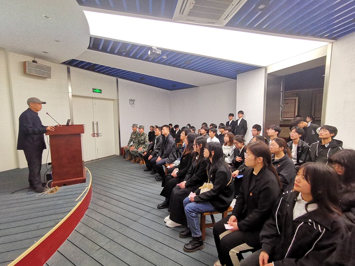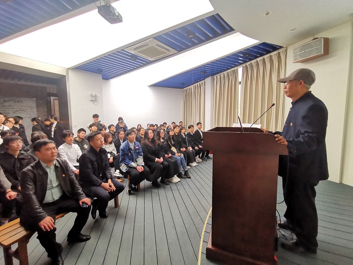 祭扫仪式结束后,全体成员进入三杰厅参观,在厅内,竹园社区退休军人党员许中杰宣讲了自己的军旅生涯和工作经历,勉励同学们追寻先辈足迹、继承先烈遗志,努力学习,报效祖国。“今年是我加入中国人民解放军的第50个年头,那一年我刚满18岁。今天站在这里,我的心情很沉重,也很激动。”退伍不褪色,退休不退志。老先生在宣讲中数度哽咽,感动了在场所有人。退役大学生吴谋祥说:“许老的宣讲是对我一次思想上的洗礼。我要向许老一样永葆军人魂,勤奋学习,追求真知,争做“树新风、讲奉献”的排头兵,通过实际行动传播文明新风,树立青年一代学好技术、奉献社会的良好文明形象。“