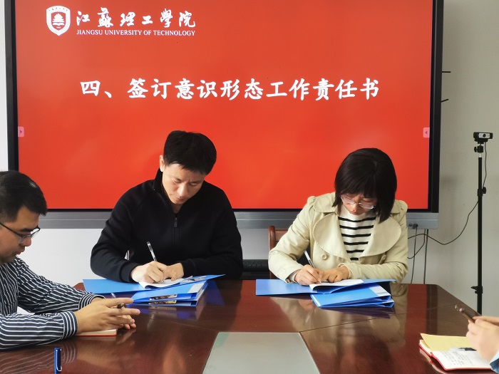 会上,羊悦传达了江苏省教育厅厅长、党组书记、省委教育工委书记江涌在3月9日全省教育系统全面从严治党工作会议上的重要讲话精神和我校2023年党建工作会议、2023年度责任目标管理暨作风建设推进会相关会议精神,代表学院党总支与各党支部书记现场签订了意识形态工作责任书。