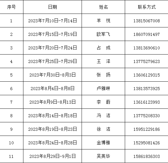 2023年暑假值班安排表
