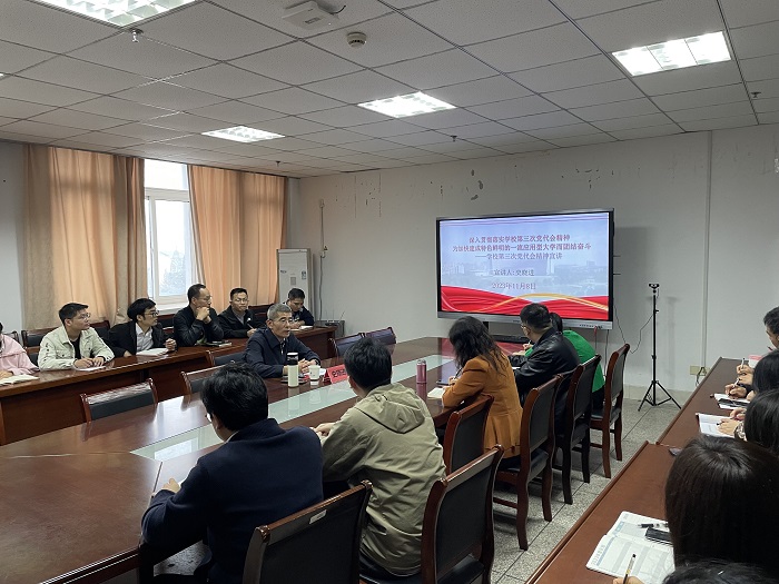 11月9日下午,校党委常委、纪委书记、派驻监察专员史晓进在知行楼512会议室为男同性恋av 作校第三次党代会精神宣讲,男同性恋av 全体教职工参加了宣讲会,宣讲会由学院院长卢雅琳主持。
