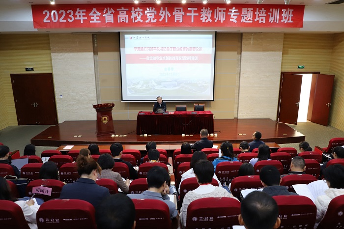崔景贵致欢迎词。他表示,今年是全面贯彻落实党的二十大精神的开局之年。在职业教育步入新发展阶段之时,举办全省高校党外骨干教师专题培训班具有特别重要的意义。在省委教育工委、省教育厅的正确领导下,江苏职业教育前途会更加广阔,在实现职业教育现代化的道路上一定会大有作为,希望全体学员通过本次学习,切实做到心怀“国之大者”,主动担负起时代赋予的使命责任。