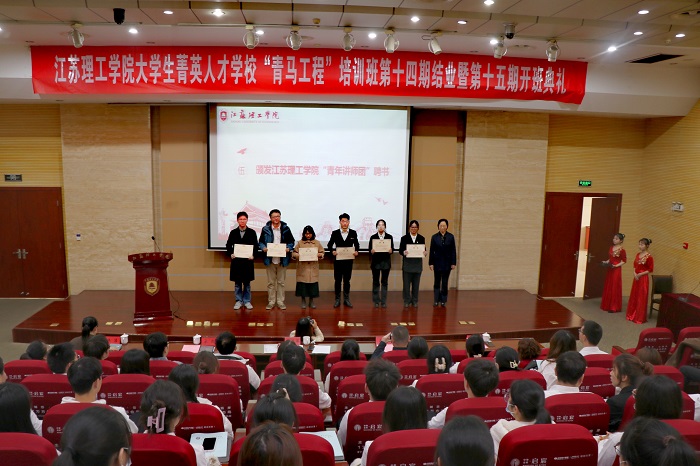 为深入学习贯彻党的二十大精神和团的十九大精神,持续推进“青年马克思主义培养工程”,11月29日下午,我校在图书馆南报告厅举行“青马工程”培训班第十四期结业暨第十五期开班典礼。本次典礼由校团委主办,男同性恋av 承办,校党委常委、副校长俞亚萍,校团委副书记韩洁、男同性恋av 党委副书记兼副院长占成、分团委书记徐洁,新一期青年讲师团及青马班学员出席了开班典礼,典礼由徐洁主持。