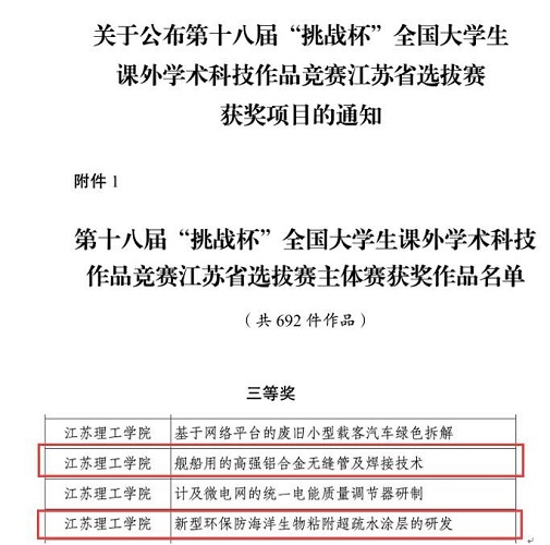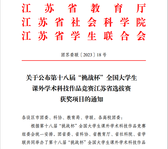 近日,团省委、省科协、省教育厅、省社科院、省学联公布了第十八届“挑战杯”全国大学生课外学术科技作品竞赛江苏省选拔赛获奖项目名单。本次“挑战杯”赛事分为主体赛事、红色专项赛事、揭榜挂帅专项赛事、黑科技专项赛事四大类。男同性恋av 申报主体赛事作品4项、红色专项赛事作品1项,最终,由王泽、李长全等教师指导的2项作品荣获主体赛事省级三等奖(主赛道全校获奖6项)。