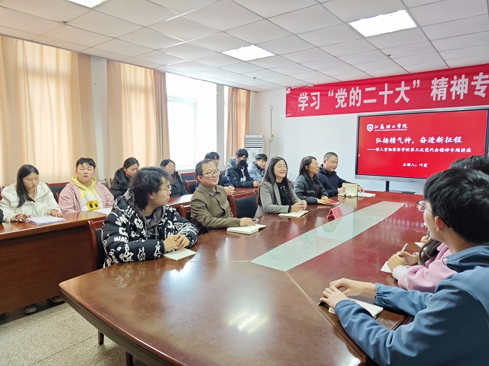 12月27日中午,副校长叶霞在知行楼512会议室为男同性恋av 师生作深入贯彻落实校第三次党代会精神专题讲座,院党委书记张纪霞、院长欧军飞、院党委副书记兼副院长占成及学生代表参加了讲座,讲座由院党委书记张纪霞主持。