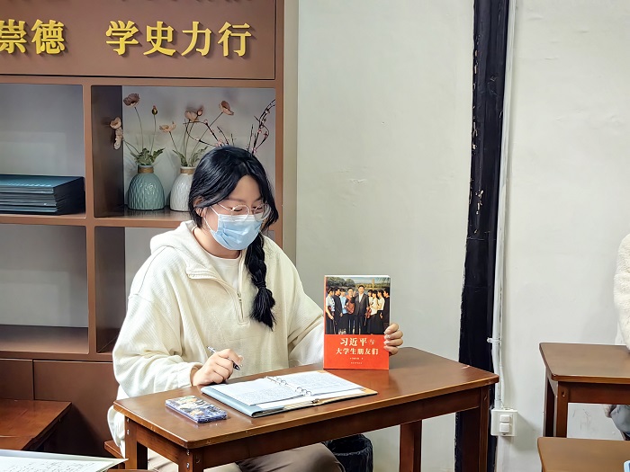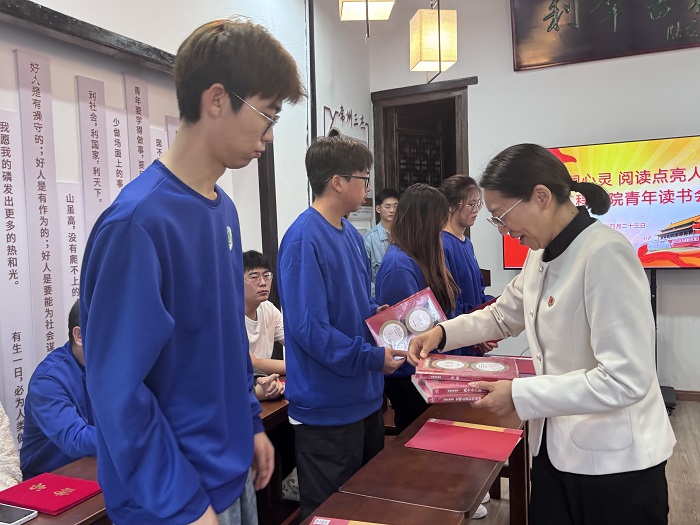 10名学生宿舍层长作为“书香宿舍朋辈领读大使”,分别接受了聘书和赠书。未来,他们将以书为媒,在宿舍内开展面对面朋辈联读活动,围绕“小切口”,用同学们自己的语言分享感悟收获,带领更多同学在宿舍中打造阅读空间,感受书香魅力,引领共创共享共学的宿舍学习生活环境新风尚。随后,在院学生会主席和省级优秀志愿者获得者的带领下,大家集体学习了习近平总书记关于读书和学习的谆谆教诲。