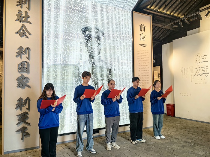 师生们随后参观了恽代英纪念馆,沿着纪念馆的青年学习线路,寻访青年楷模生平事迹,重温青年楷模奋斗路程。全体党员在恽代英同志铜像前重温了入党誓词。