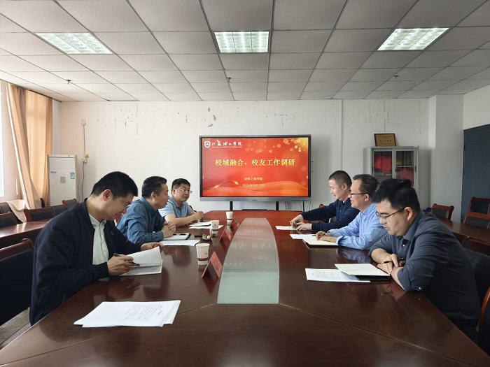 5月13日上午,校城融合办、校友办钱云福、副主任赵小荣、校友工作科科长江立宇来男同性恋av 开展工作调研,院长欧军飞、院党委副书记兼副院长占成、副院长张扬在知行楼512会议室参加了调研会。