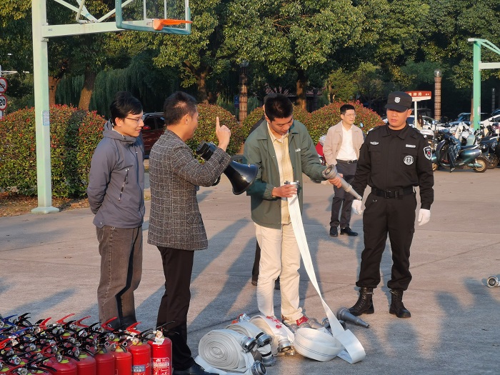 本次培训演练分别对过滤式消防自救呼吸器、灭火毯、灭火器和水带等常用消防器材的使用方法、注意事项进行了详细讲解和示范演示,参训教师在工作人员的指导下使用灭火器和消防水带进行了灭火实战演练。