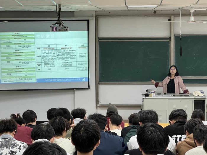 刘老师从学院三个专业入手,对专业考研和就业现状进行了分析,从考研院校选择、备考规划等方面深入浅出的为同学们提供了系统指导,希望同学们综合考虑自身特点及兴趣方向,做出最适合的选择,勉励考研学子通过自己的努力,在考研道路上取得优异成绩,实现自己的梦想。