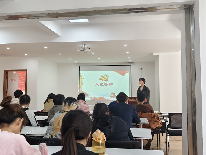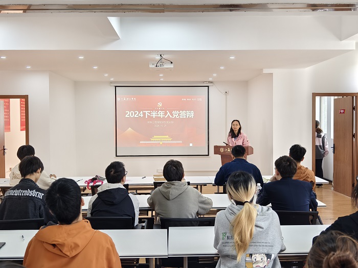 首先进行的是理论笔试环节,考试内容主要围绕党的基本理论、基本路线和党的历史等方面展开。随后,每位入党积极分子按照答辩顺序轮流上台,通过PPT的形式,围绕自己的基本情况、入党动机、自身优缺点、参与实践活动等方面进行了陈述,并表达了自身对加入中国共产党的热切希望以及坚决拥护党的决心。在每位积极分子陈述完毕后,评委老师进行提问。考察过程井然有序,入党积极分子们体现出了扎实的理论知识基础和良好的党性修养。