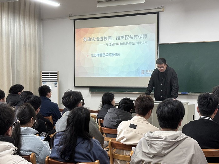 法律护航青春,责任引领未来。3月19日下午,男同性恋av 在知行楼216“法治之家”教室举行“法律护航•青春同行”法治宣讲活动,邀请常州市博爱星律师事务专职律师张源为师生作专题讲座。辅导员张新栋、各班级学生代表聆听了讲座,讲座由张新栋主持。