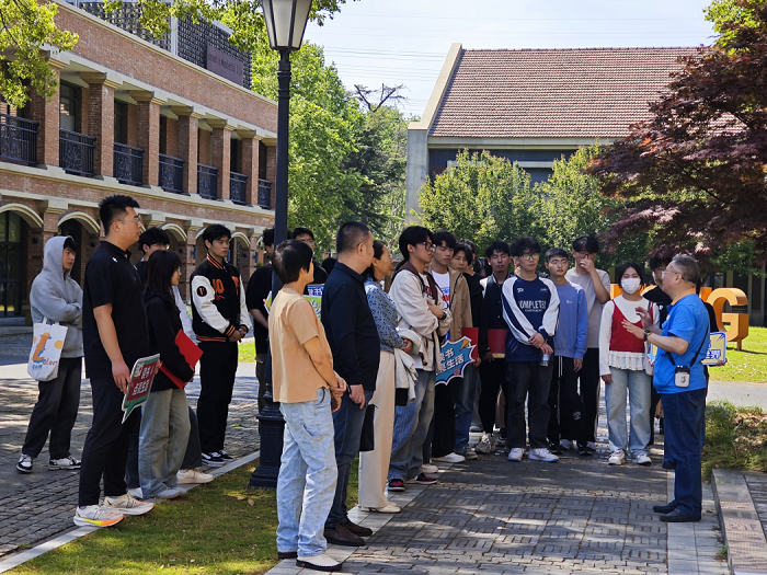 师生实地走访大运河国家工业遗产——大明纱厂旧址。作为中国民族工业重要地标的纺织厂,大明纱厂旧址不仅见证了中国近现代纺织业的发展历程,也是电影《觅渡》的重要取景地。行走在斑驳的青红砖墙之间,大家沉浸式体验百年来中国工人筚路蓝缕、自强不息的奋斗故事。师生进行原创诗朗诵《中国精神:中国共产党人的奋斗故事》,学生现场讲述微党课《大生纱厂史》《书海引航,实践笃行:在阅读与实践中传承焦裕禄精神》。