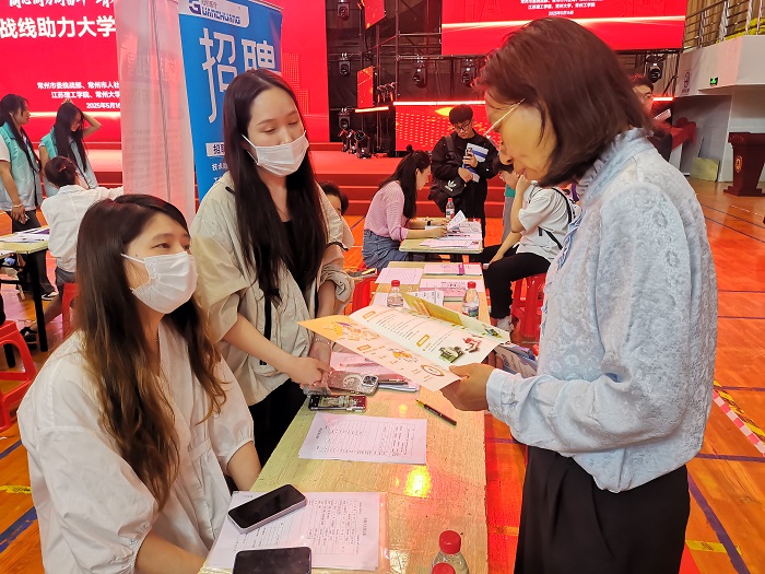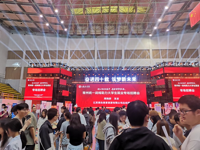 本次招聘会在校体育馆举行,汇聚了众多省内知名企业,提供涵盖材料科学、工程技术、智能制造等多个领域的优质岗位,吸引了常州各高校毕业生前来应聘。