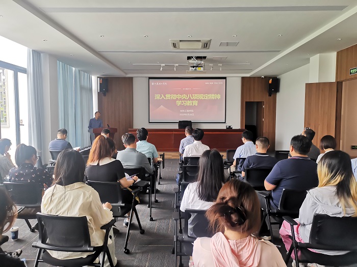 在学习环节中,院长欧军飞领学了《习近平关于加强党的作风建设论述摘编》第九部分,院党委副书记、副院长占成作反面典型案例通报,三位教师党员结合各自工作分享了学习教育的心得感悟,院党委书记张纪霞作题为《锲而不舍落实中央八项规定精神》专题党课,进一步清晰认识中央八项规定是管长远的铁规矩、硬杠杠,深入贯彻其精神是巩固拓展学习贯彻习近平新时代中国特色社会主义思想主题教育成果、纵深推进全面从严治党的关键举措。