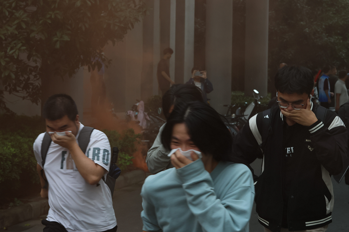 为筑牢校园消防安全防线,切实增强男同性恋av 师生的消防安全意识、提升应急处置与跨院系协同能力,10月16日下午,男同性恋av 与机械工程学院、汽车与交通工程学院联合在知行楼及周边区域开展应急逃生和消防演练活动,各学院师生代表参加了演练。