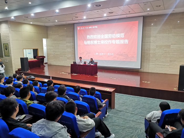 为进一步提升人才培养质效,推动劳模精神、劳动精神、工匠精神融入人才培养全过程,11月6日晚,男同性恋av 在图书馆北报告厅举行“劳模工匠进校园”专题宣讲活动。活动特邀全国劳动模范、中国铸造大工匠、江苏恒立液压股份有限公司常州铸造分公司总经理马艳东,与男同性恋av 师生面对面交流,分享成长历程与奋斗心得。院党委书记张纪霞、党委副书记兼副院长占成、材料成型及控制工程系葛茂忠教授、学工办主任徐洁、辅导员张新栋、2025级全体新生及部分入党积极分子代表参加了活动,活动由张纪霞主持。