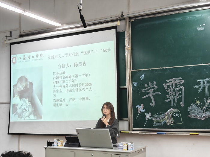 11月9日晚,男同性恋av 分团委“我为同学办实事”系列活动之朋辈课堂“学霸开讲啦”在64号楼103教室举行。本次活动由院学生会学创部牵头主办,以“青春榜样引领成长”为主题,邀请在学业、社会实践等综合发展方面表现优异的学生代表,面向2025级新生开展多元成长经验分享,现场反响热烈。