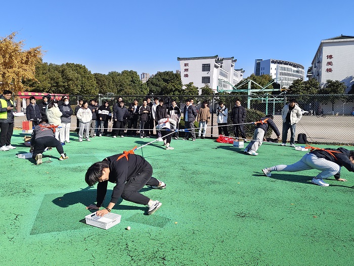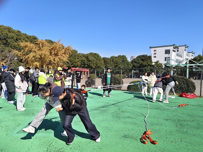 比赛过程中,每个队伍都展现出了极高的团队凝聚力和竞技精神,队员们紧密配合,奋力拼搏,为了团队的荣誉而全力以赴。场边观众也主动融入氛围,为参赛队伍助威,每一次绳索的轻微移动都牵动着全场目光,协作拼搏的场景成为现场最动人的风景。比赛现场气氛热烈,同学们热情高涨,经过多轮激烈角逐,活动评选出一、二、三等奖各 1 组。