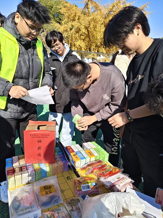 本次比赛特别设置 “抽奖盲盒”环节,工作人员提前将体育器材、解压玩具、暖贴等礼品装入盲盒,待比赛结束后组织全体参与者有序抽取。拆开盲盒时的惊喜笑声与彼此分享礼品的温馨画面,进一步延续了活动的快乐氛围,让“减压”效果从竞技延伸至互动。