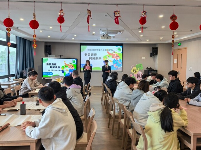 活动在领读声中缓缓拉开序幕。曾担任学校宣传部精品阅读栏目“悦读家”和该院阅读品牌栏目“青春领读人”的两位学生主播率先登场,分别领读《谷雨已至,春序未央》《新时代航天“三大精神”故事汇》节选,用温柔而有力量的声音,带领现场听众在春日诗意中感受文字的温暖与力量,在航天豪情中深化“强国建设、材料有我”的信念。