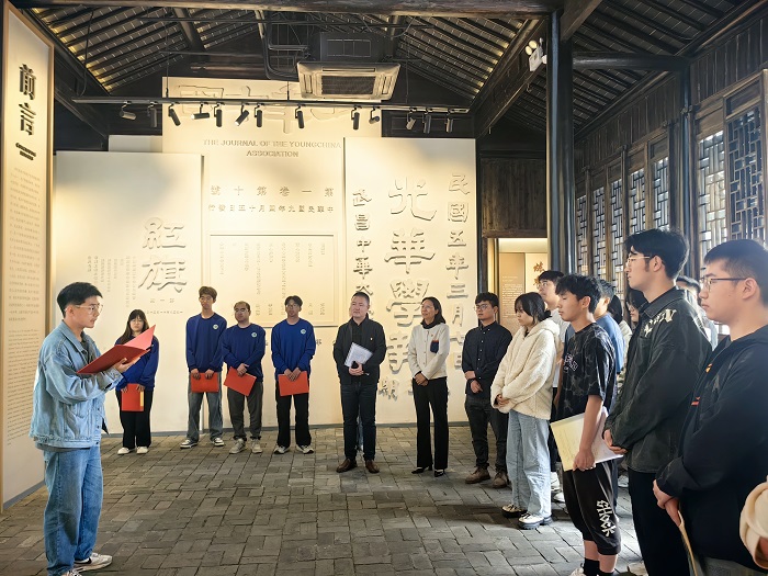 师生们随后参观了恽代英纪念馆,沿着纪念馆的青年学习线路,寻访青年楷模生平事迹,重温青年楷模奋斗路程。全体党员在恽代英同志铜像前重温了入党誓词。