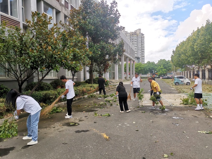大家分工合作,有的负责清理道路上的淤泥和下水道排水口,有的则细心地捡拾散落各处的垃圾和树枝树叶等等。经过接近两个小时的努力,45号楼周围面貌焕然一新, “我们应当在需要的时候第一时间站出来,进一步发挥带头模范作用,带动更多的同学参与到校园维护中来,”大家纷纷表示。