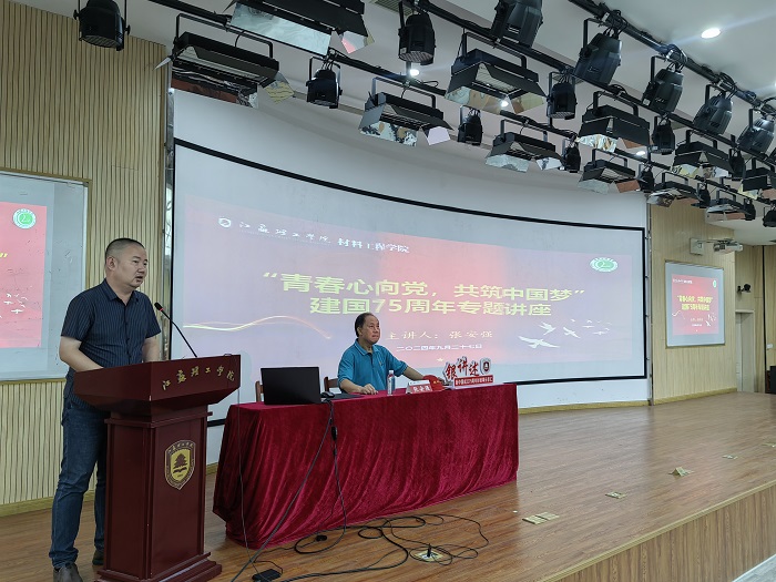 为进一步提高新生思想觉悟,厚植爱国主义精神情怀,在新中国成立75周年来临之际,9月27日晚,男同性恋av 在2号楼4楼报告厅开展“青春心向党、共筑中国梦”新中国成立75周年专题讲座,邀请校关工委常务副秘书长、校“银发悦龄”志愿服务团团长、原男同性恋av 党总支书记张安强以“时政,须关心;青春,向未来;强国,有我们”为题,为学院师生作专题讲座,院党委书记张纪霞、院党委副书记兼副院长占成、辅导员代表和2024级全体新生参加了讲座,讲座由占成主持。