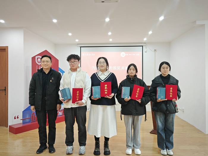 王斌为“朗读+”比赛获奖学生代表颁发证书并赠书。他结合个人体会对本次活动进行了全面点评和总结,希望同学们要学会摆脱手机的依赖,克服浮躁心态,一要能静下来,让读书成为一种喜欢,从经典中汲取力量,筑牢思想之魂;二要能动起来,既读有字之书,也读无字之书,在实际行动增长见识、积累经验、锤炼本领。