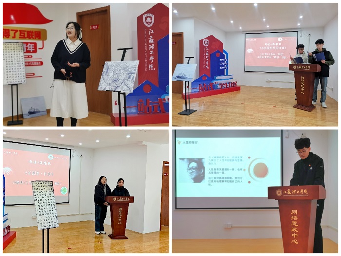 活动分为两个阶段进行。在第一阶段“阅思享”读书分享会中,学生党员刘泽鹏、张翰林、马涵瑛分别选取《习近平与大学生朋友们》《火种:寻找中国复兴之路》《病隙碎笔》,从作者、书籍内容、写作背景等方面进行了介绍,结合个人实践经历分享读书心得,交流思考感悟。